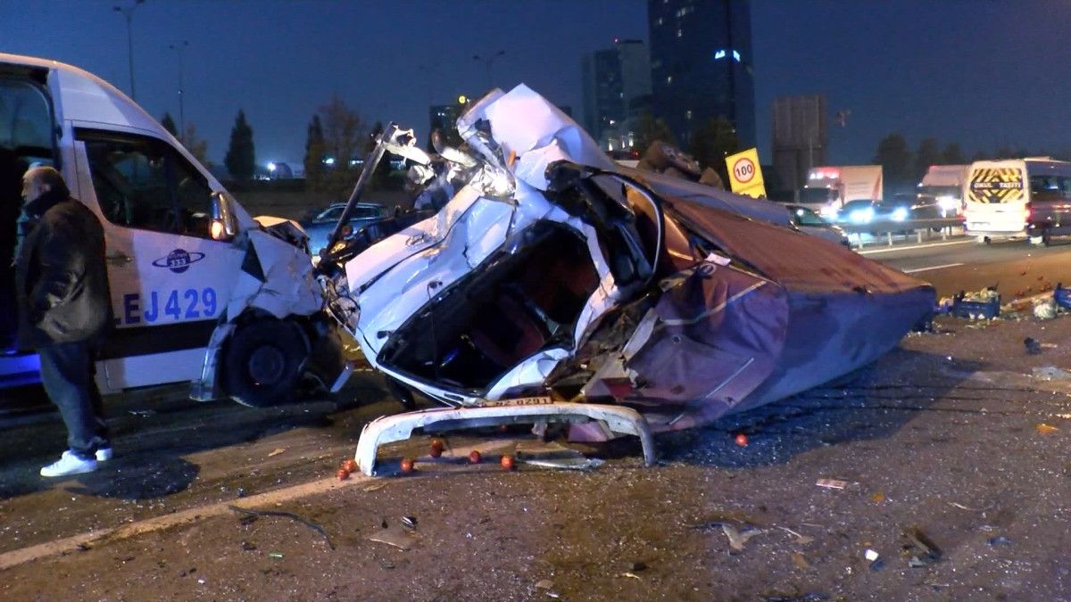 Kaza nedeniyle TEM Otoyolu’nda 2 şerit trafiğe kapanırken trafik akışı tek şeritten kontrollü olarak sağlandı.